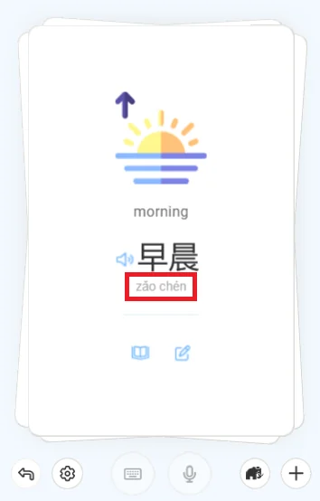 Wenn Sie es vorziehen, dass eine Stimme die Wörter beim Lernen nicht ausspricht, können Sie den Ton in den Anwendungseinstellungen deaktivieren, während Sie Ihre Karten üben. Sie finden das Einstellungssymbol unten links auf dem Bildschirm. Dadurch werden jedoch Hörübungen von Ihrem Lernprozess ausgeschlossen.