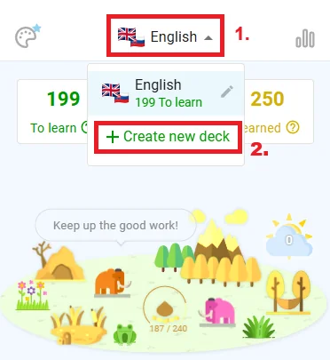 In der kostenlosen Version gibt es ein Limit von 20 hinzugefügten Karten. Das bedeutet, dass es an der Zeit ist, in den Lernmodus zu wechseln und Ihre Wörter zu überprüfen – das hilft Ihnen, weiterzukommen und echte Fortschritte zu machen. Sobald Sie ein paar Wörter gelernt haben und Ihre Gesamtzahl unter 20 sinkt, können Sie wieder neue Wörter hinzufügen. Wenn Sie die kostenpflichtige Version verwenden, gibt es überhaupt kein Limit.