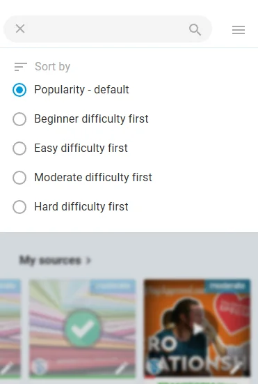 Sie brauchen die Sprachebene nicht zu ändern. Sie finden alle Niveaus in der Bibliothek, und die Sets und Kurse sind entsprechend beschriftet.