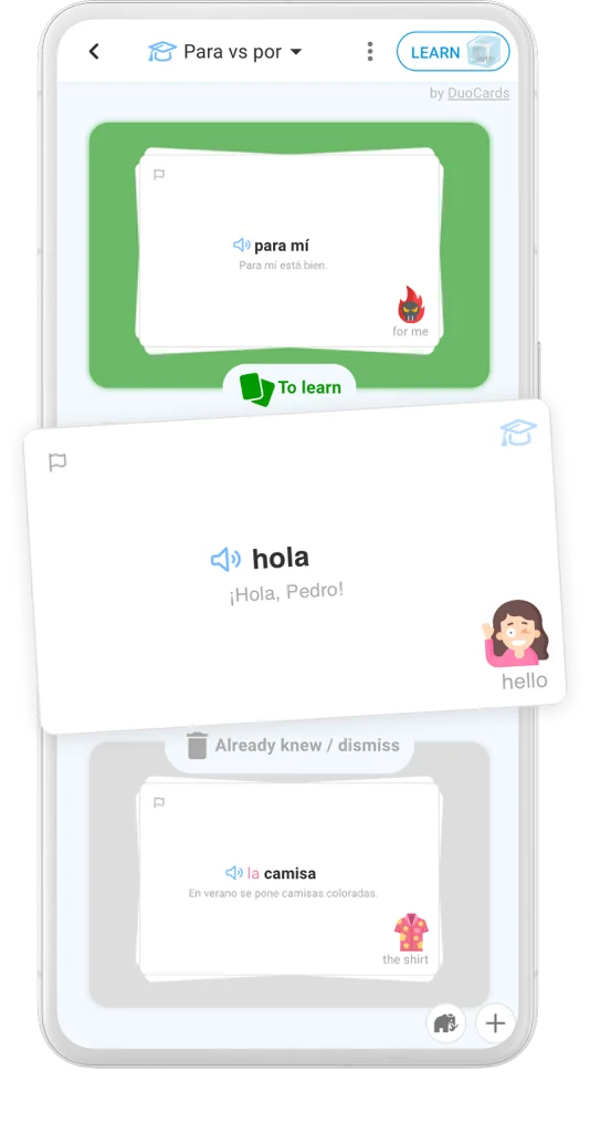 Learn a language using flashcards