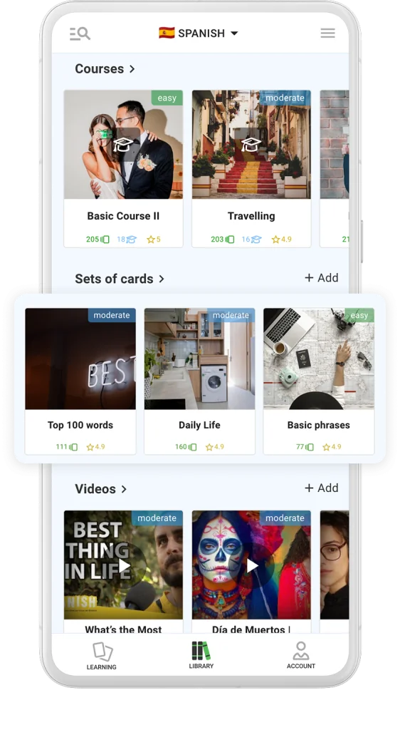 DuoCards lets you learn from real content you enjoy — YouTube videos, articles, and more. Plus, our AI conversations help you actually speak Spanish, not just translate sentences.